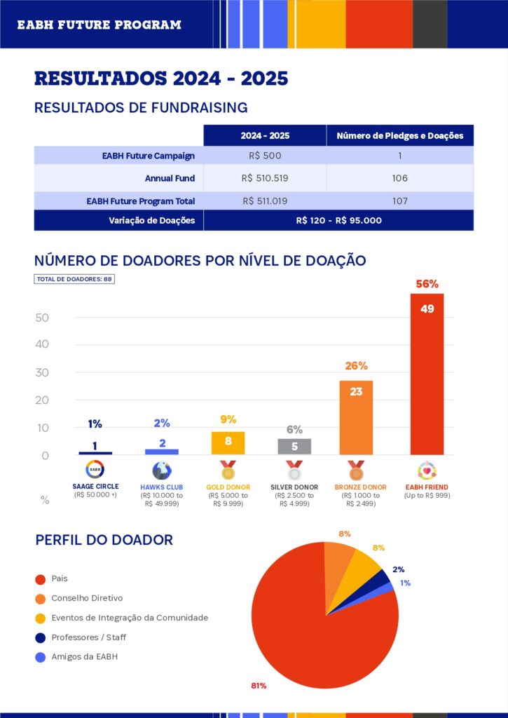 “Para a gente, eu acho que investir no Future Program da EABH é investir no futuro dos nossos filhos, é isto. E investir no futuro deles, é muito importante também, investir nas futuras gerações que virão, e vão poder usufruir da nossa futura escola, que eu amo muito, que é family, uma grande família, a gente está muito feliz de poder ajudar sempre, vamos lá, vamos contribuir!”